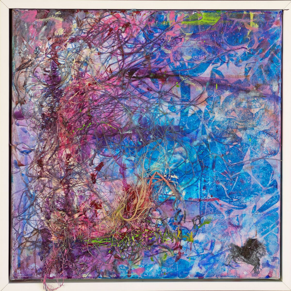 One of set of twelve 30x30 cm acrylic-based mixed-media gallery-wrapped canvases which we have exhibited together and called "The Boardwalk". Seen here framed so slightly bigger. Click on image to see 3 of them in a room setting.